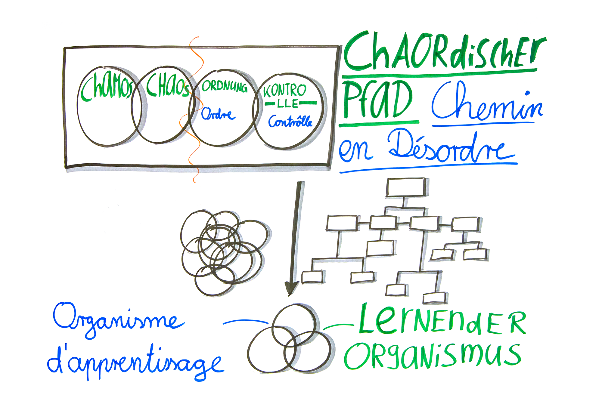 Les quatre états de Chamos, Chaos, Ordre et Contrôle sont dans un contiuum fluide. Cette vidéo résume bien la situation en anglais: voir içi-dessus Le passage entre le chaos et l’ordre est le chemin chaordique lui-même, qui doit être „parcouru“ dans l’art of hosting.